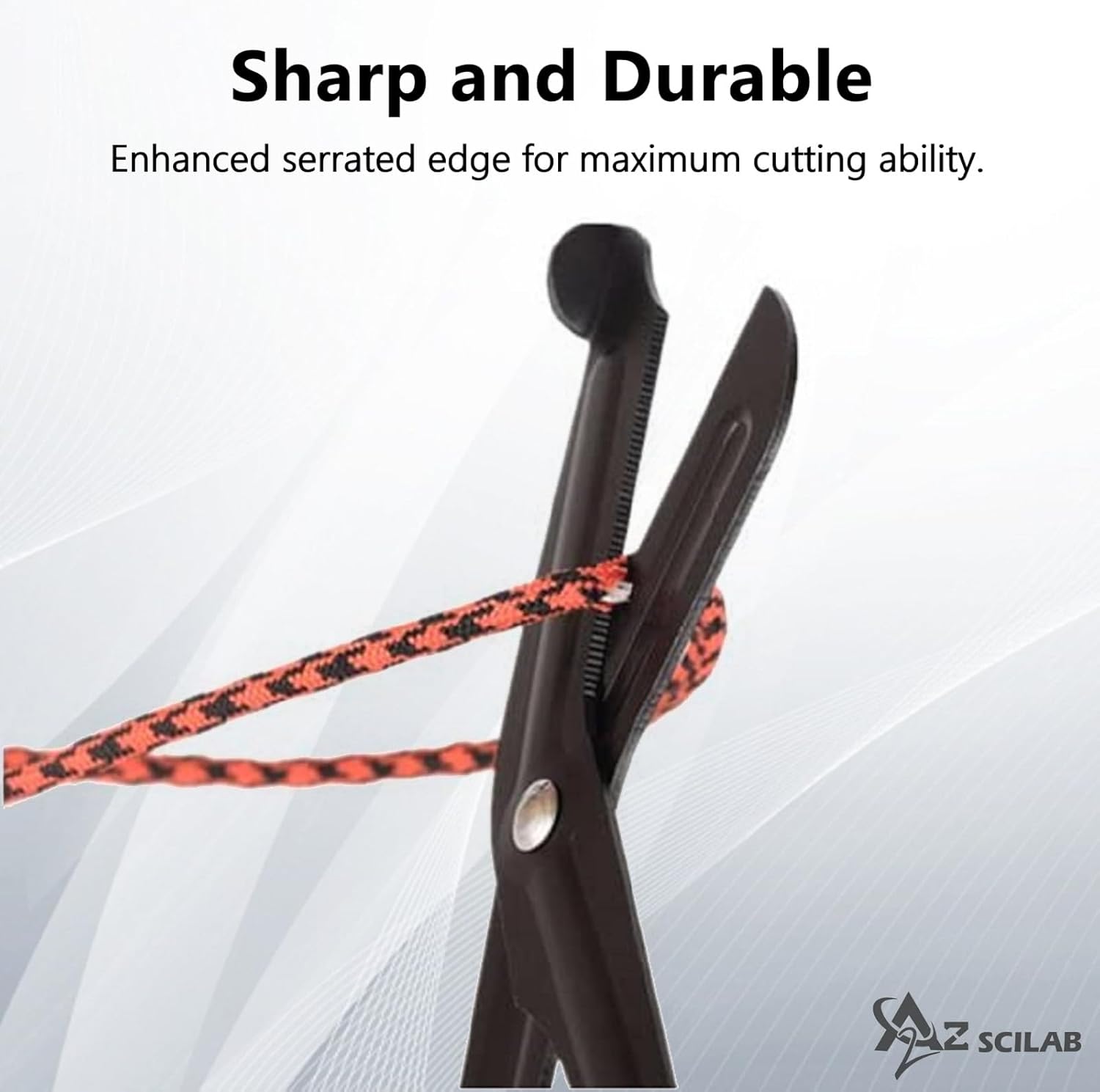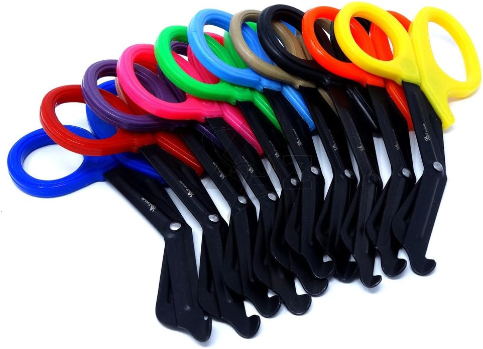 - Serraciones fresadas para cortar fácilmente el material más duro. Afilado y duradero para quitar rápidamente la ropa de pacientes con trauma, apósitos, férulas de fibra de vidrio y otros artículos restrictivos.