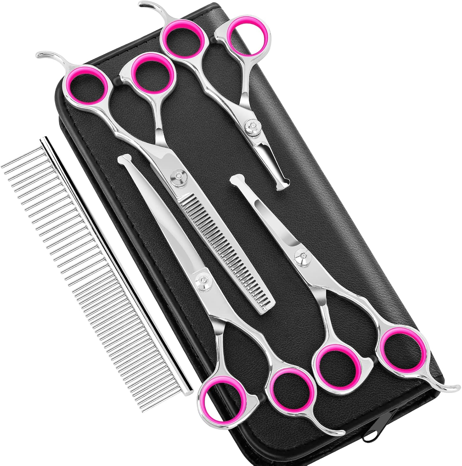 - Silencioso y fácil de limpiar: cada tijera para perros tiene un silenciador entre las asas, lo que significa un aseo silencioso para tu gato o perro sensible, menos aterrador para tus mascotas. Tornillo ajustable para estanqueidad o cuchillas separadoras para afilar, fácil de limpiar y mantener.